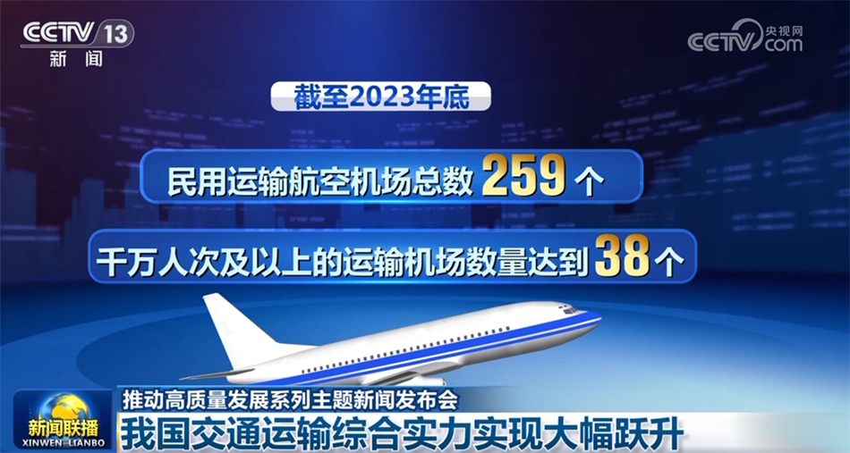 五年來,客貨運輸不斷發(fā)展,群眾出行更加舒適便捷,貨物運輸更加順暢高效。截至2023年底,我國鐵路營業(yè)里程15.9萬公里,其中高鐵營業(yè)里程4.5萬公里;全國公路里程543.68萬公里,其中高速公路里程18.36萬公里;民用運輸航空機(jī)場總數(shù)259個,千萬人次及以上的運輸機(jī)場數(shù)量達(dá)到38個。