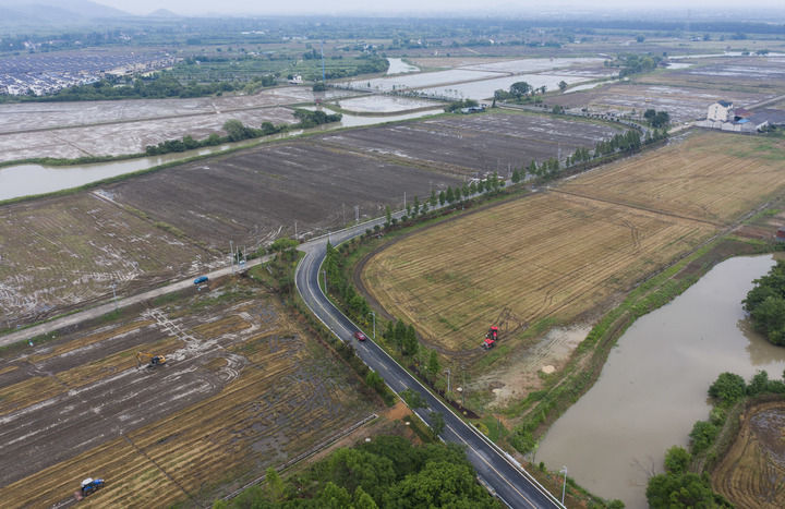 在浙江省諸暨市趙家鎮(zhèn)上京村拍攝的改造提升后的縣道(2024年6月4日攝,無(wú)人機(jī)照片)。新華社記者 徐昱 攝
