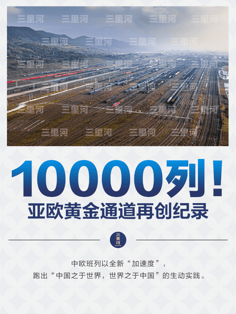 飛馳的中歐班列,正提升亞歐大陸互聯(lián)互通水平,以全新“加速度”,在高質(zhì)量發(fā)展的軌道上,帶動(dòng)沿途市場(chǎng)共同受益,跑出“中國(guó)之于世界,世界之于中國(guó)”的生動(dòng)實(shí)踐。(“三里河”工作室)