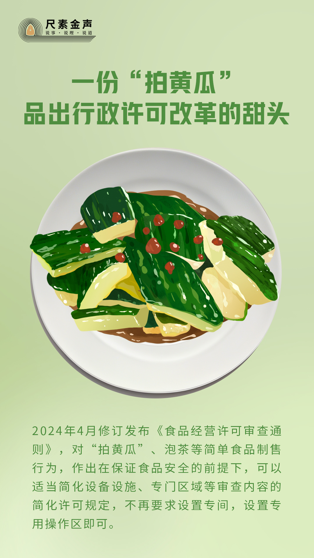 結(jié)合餐飲業(yè)實(shí)際,考慮中小經(jīng)營(yíng)主體和消費(fèi)者的訴求,科學(xué)評(píng)估食品安全風(fēng)險(xiǎn),去年6月,市場(chǎng)監(jiān)管總局修訂發(fā)布《食品經(jīng)營(yíng)許可和備案管理辦法》,今年4月修訂發(fā)布《食品經(jīng)營(yíng)許可審查通則》,對(duì)“拍黃瓜”、泡茶等簡(jiǎn)單食品制售行為,作出在保證食品安全的前提下,可以適當(dāng)簡(jiǎn)化設(shè)備設(shè)施、專(zhuān)門(mén)區(qū)域等審查內(nèi)容的簡(jiǎn)化許可規(guī)定,不再要求設(shè)置專(zhuān)間,設(shè)置專(zhuān)用操作區(qū)即可。各地市場(chǎng)監(jiān)管部門(mén)立足當(dāng)?shù)貙?shí)際優(yōu)化“拍黃瓜”經(jīng)營(yíng)許可條件,相繼出臺(tái)相關(guān)食品經(jīng)營(yíng)許可和備案管理實(shí)施細(xì)則。比如,修訂的《上海市食品經(jīng)營(yíng)許可和備案管理實(shí)施辦法》已于5月10日正式實(shí)施,明確加工制作植物性冷食類(lèi)食品(不含非發(fā)酵豆制品),可申請(qǐng)簡(jiǎn)單制售經(jīng)營(yíng)項(xiàng)目,在保證食品安全的前提下,可僅設(shè)置專(zhuān)區(qū)。
