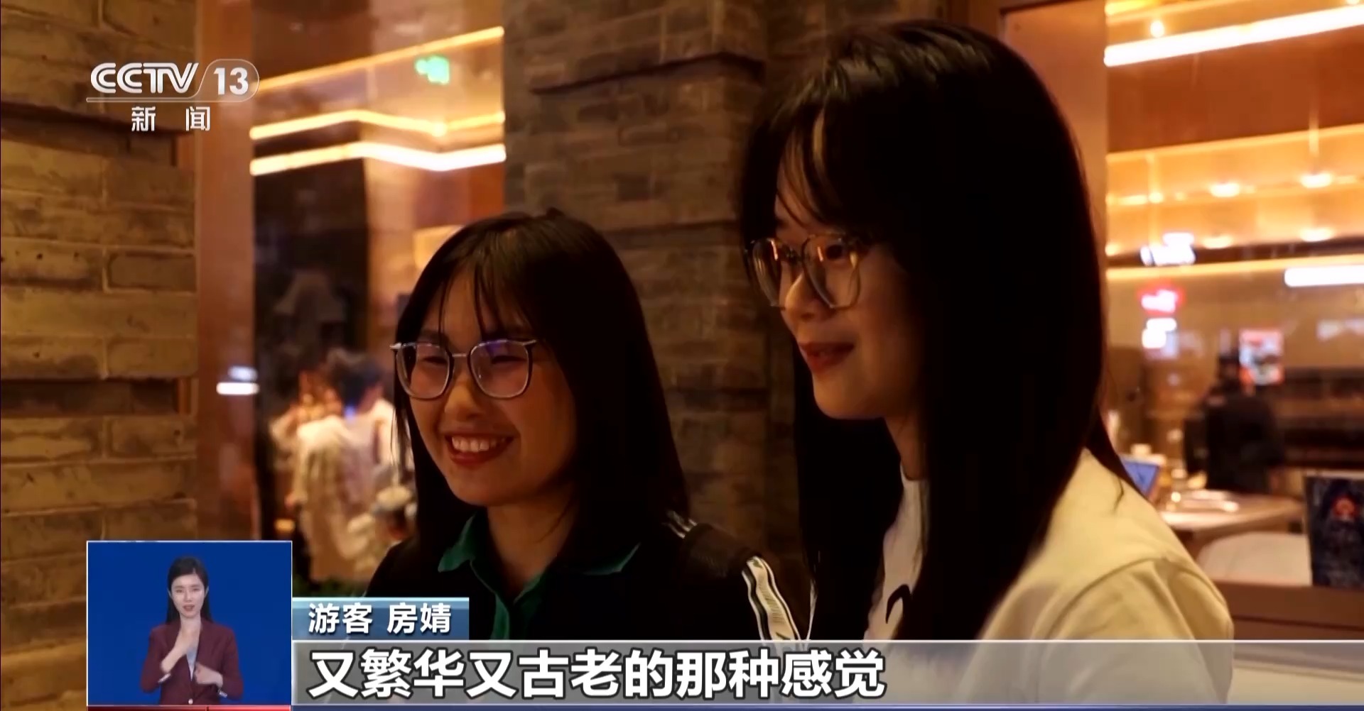 游客 房婧:又繁華又古老的那種感覺,最近天氣也比較熱,晚上降溫以后,小風吹著也很涼爽。