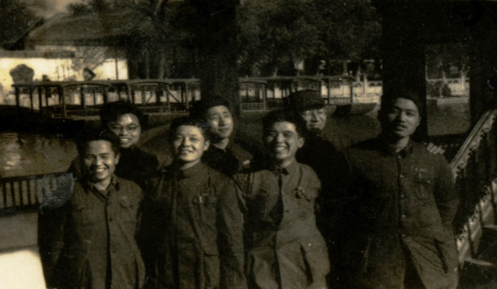 1952年在清華大學石油系與系內部分青年教師合影(前排左二為方華燦)。新華社發(fā)