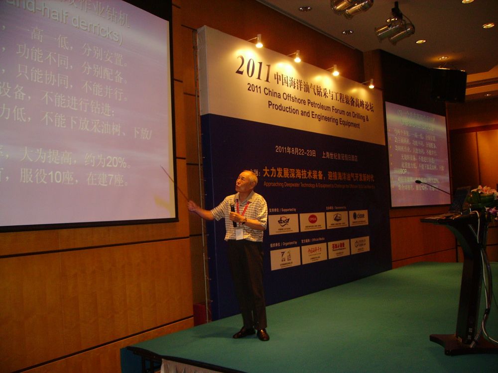 2011年,方華燦在上海參加中國海洋油氣鉆采與工程裝備高峰論壇時作學術報告。新華社發(fā)