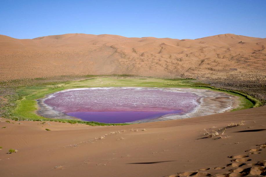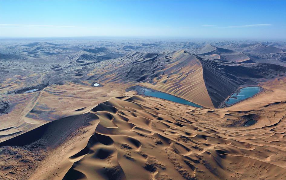 巴丹吉林沙漠地處阿拉善高原,屬中國(guó)西北極干旱的溫帶荒漠地區(qū),是中國(guó)第三大沙漠和第二大流動(dòng)沙漠。該地區(qū)以連綿起伏的高大沙山和丘間眾多湖泊而聞名,展示了沙漠景觀不斷變換的地質(zhì)和地貌特征,令人嘆為觀止,全球少有沙漠可以比肩。巴丹吉林沙漠的重要標(biāo)志包括世界最高的固定沙山(相對(duì)高度達(dá) 460 米)、最密集的沙漠湖泊、最廣闊的鳴沙區(qū)域,以及多樣的風(fēng)蝕地貌。如此獨(dú)特的景觀展現(xiàn)了巴丹吉林沙漠非凡的自然美學(xué)價(jià)值,展示著地球上重要、典型且持續(xù)的風(fēng)沙地貌發(fā)展過(guò)程,同時(shí)也是豐富多彩的生物棲息地。