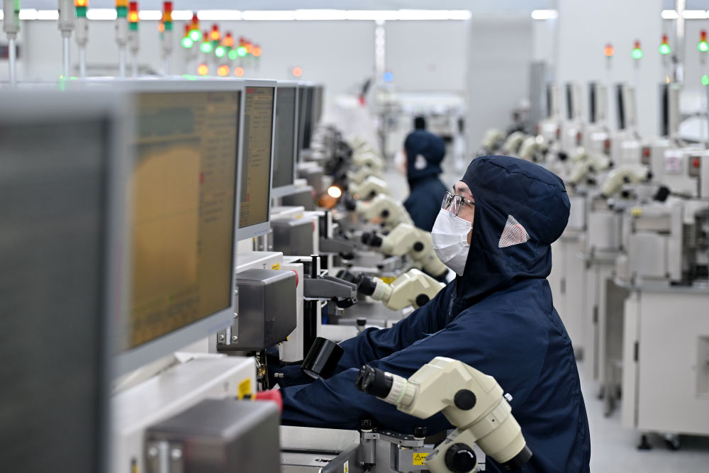 7月26日,湖南越摩先進(jìn)半導(dǎo)體有限公司工作人員調(diào)試引線鍵合設(shè)備。新華社記者 李鑫 攝