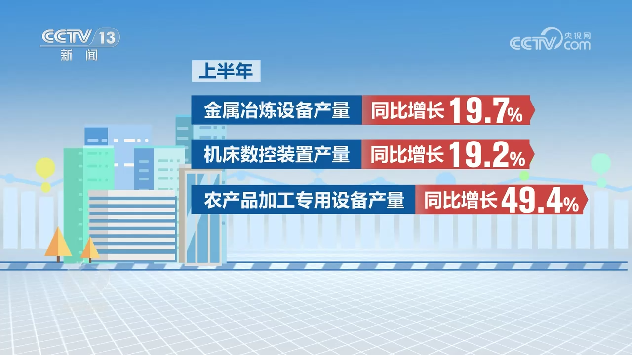 今年以來(lái),在各方共同努力下,推動(dòng)大規(guī)模設(shè)備更新和消費(fèi)品以舊換新工作取得良好開(kāi)局。一方面,大規(guī)模設(shè)備更新帶動(dòng)了相關(guān)設(shè)備生產(chǎn)較快增長(zhǎng),惠及多個(gè)重點(diǎn)行業(yè)。上半年,規(guī)模以上金屬冶煉設(shè)備、機(jī)床數(shù)控裝置、農(nóng)產(chǎn)品加工專用設(shè)備產(chǎn)量同比分別增長(zhǎng)19.7%、19.2%、49.4%。另一方面,消費(fèi)品以舊換新政策引導(dǎo)居民消費(fèi)潛力有序釋放,對(duì)拉動(dòng)汽車、家電等耐用消費(fèi)品銷量增長(zhǎng)起到了一定的“催化”作用。上半年,限額以上單位,也就是年主營(yíng)業(yè)務(wù)收入達(dá)到500萬(wàn)元及以上的零售企業(yè),家用電器和音像器材類商品零售額同比增長(zhǎng)3.1%,比上年同期加快2.1個(gè)百分點(diǎn)。