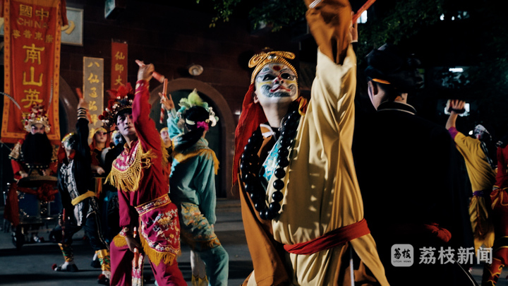 因大部分經(jīng)驗(yàn)豐富的隊(duì)員前往倫敦,陳揚(yáng)波選擇留在家鄉(xiāng),引領(lǐng)其余年輕隊(duì)員繼續(xù)進(jìn)行他們自幼熟知的游街演出。舞槌似畫(huà)戟,步伐若戰(zhàn)馬,身著戲服的隊(duì)員們將自己的故事融入英歌之中,用行動(dòng)詮釋著“一朝拾起英歌槌,一生便是英歌人”。