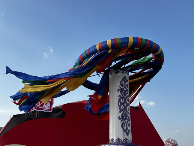 那達慕現(xiàn)場的巨型“將嘎”(項圈)