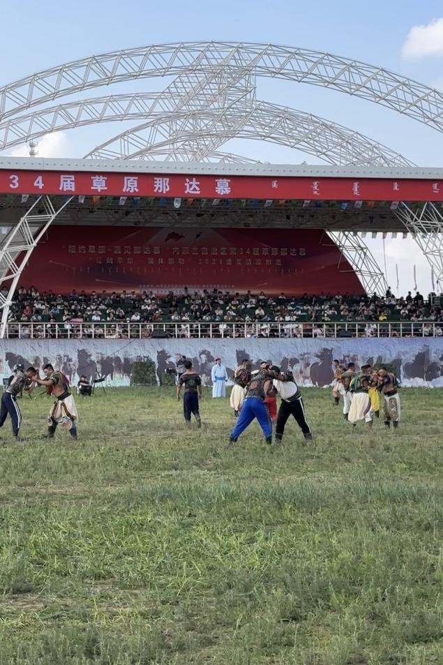 那達慕現(xiàn)場搏克手摔跤