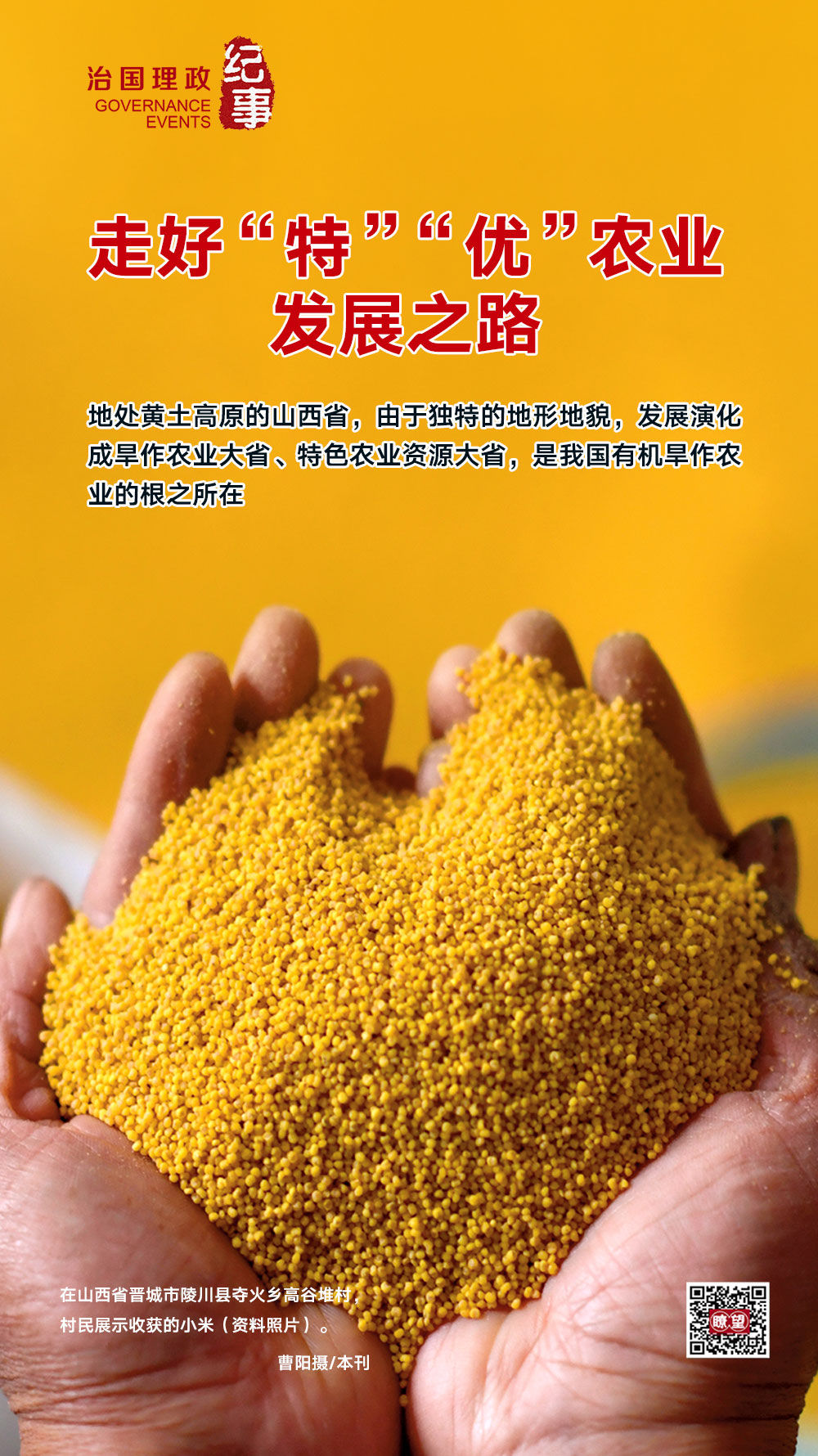 “人說山西好風(fēng)光,地肥水美五谷香?!钡靥廃S土高原的山西省,由于獨(dú)特的地形地貌,發(fā)展演化成旱作農(nóng)業(yè)大省、特色農(nóng)業(yè)資源大省,是我國(guó)有機(jī)旱作農(nóng)業(yè)的根之所在。