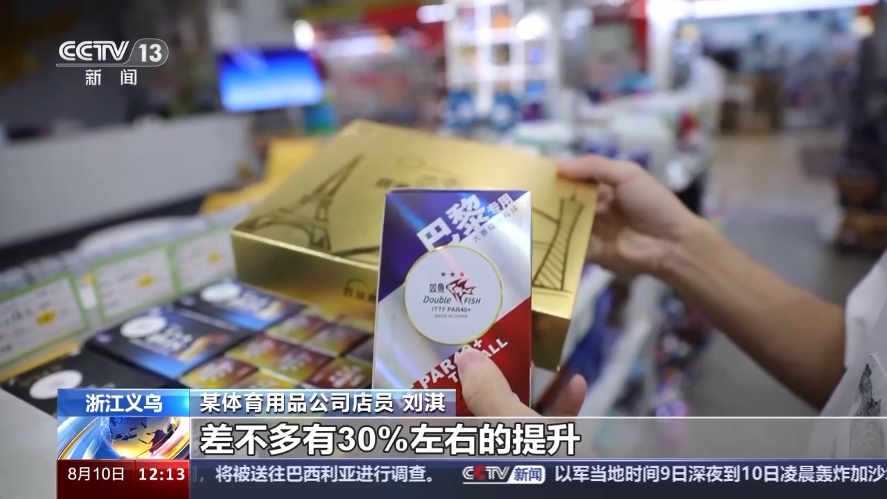某體育用品公司店員 劉淇:巴黎奧運會的紀念珠目前銷量是最好的,現(xiàn)在差不多有30%左右的提升。