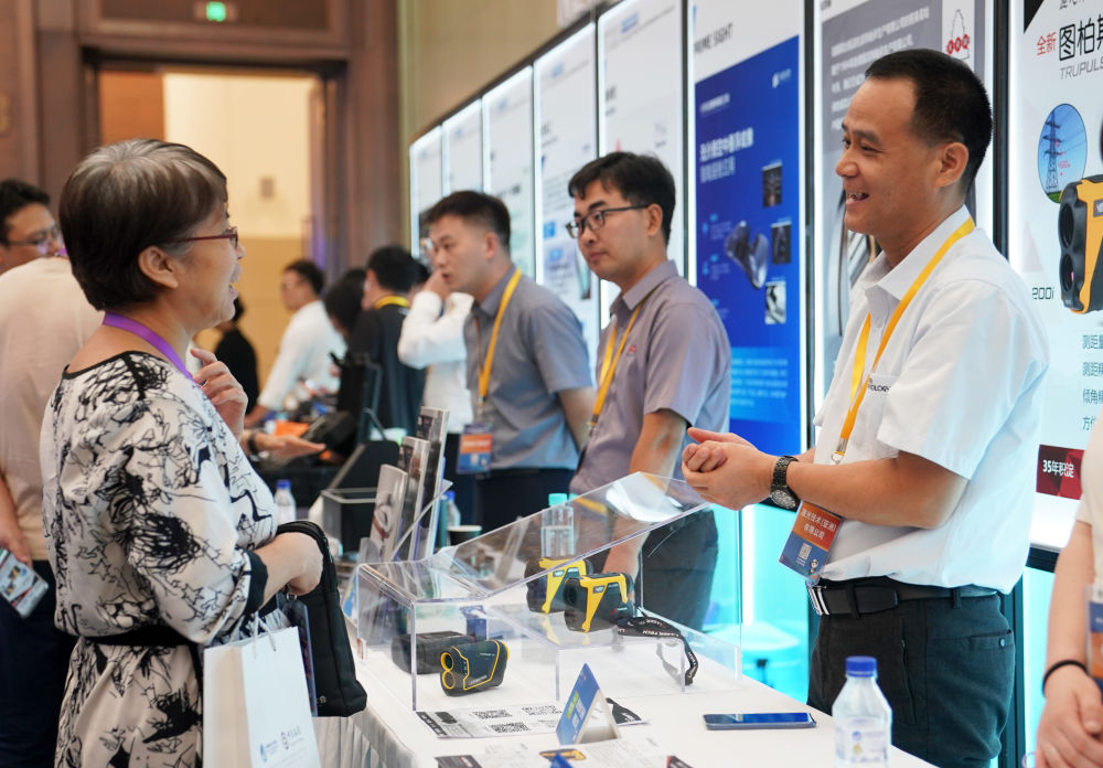 在第七屆進(jìn)博會(huì)技術(shù)裝備、汽車展區(qū)展前供需對接會(huì)現(xiàn)場,展商工作人員(右)向采購商介紹企業(yè)產(chǎn)品(2024年8月8日攝)。新華社發(fā)(陳浩明 攝)