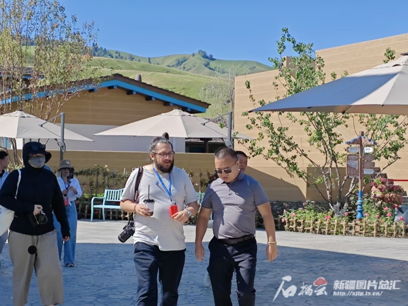 當(dāng)日,車輛剛抵達(dá)那拉提景區(qū)游客集散中心,11位土耳其媒體人士便滿懷激情,紛紛舉起手機(jī)與相機(jī),快門聲此起彼伏,記錄下這初見的驚喜。抬眼遠(yuǎn)眺,看到的是村落里一座座錯(cuò)落有致的院落式,這里是7月初營業(yè)的那拉提拈花灣哈茵賽民族風(fēng)情度假村。