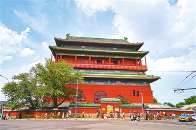 北京中軸線上的鼓樓。 宋家儒攝(人民視覺(jué))