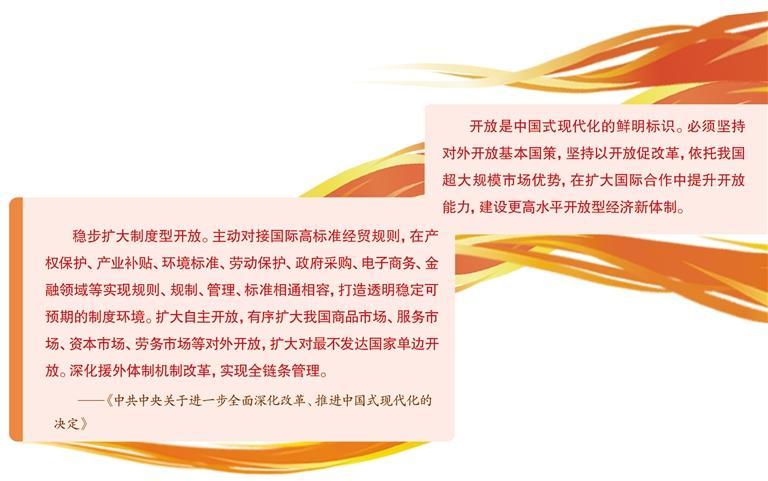 《決定》提出“穩(wěn)步擴(kuò)大制度型開(kāi)放”,要求主動(dòng)對(duì)接國(guó)際高標(biāo)準(zhǔn)經(jīng)貿(mào)規(guī)則?!稕Q定》作出的一系列重要部署影響廣泛、意義深遠(yuǎn)。