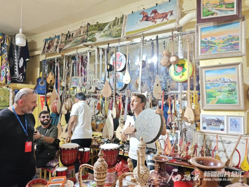 此外,喀什古城的銅器、木器、手工樂器、葫蘆烙畫等各類傳統(tǒng)非遺技藝,也成為土耳其媒體人關(guān)注的焦點(diǎn)。在木器巴扎內(nèi),手藝人拿起馬克筆、電烙筆、刻刀等工具,在葫蘆上勾好型,隨著工具在表面游走,一幅精美獨(dú)特的圖案便躍然于葫蘆之上。這一幕吸引了一日報總編輯易卜拉欣·瓦爾勒,“這是我第一次看到葫蘆烙畫,太神奇了,僅用幾件工具,就能將葫蘆變成一件精美的藝術(shù)品?!?/p>