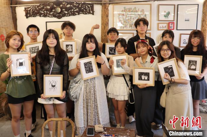 8月15日,臺(tái)灣青年展示制作完成的版畫。傅飛揚(yáng) 攝