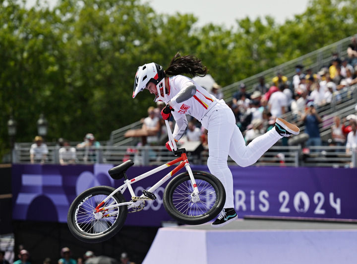 中國(guó)選手鄧雅文在巴黎奧運(yùn)會(huì)自由式小輪車(chē)女子公園賽決賽中獲得冠軍(2024年7月31日攝)。新華社記者 胡虎虎 攝