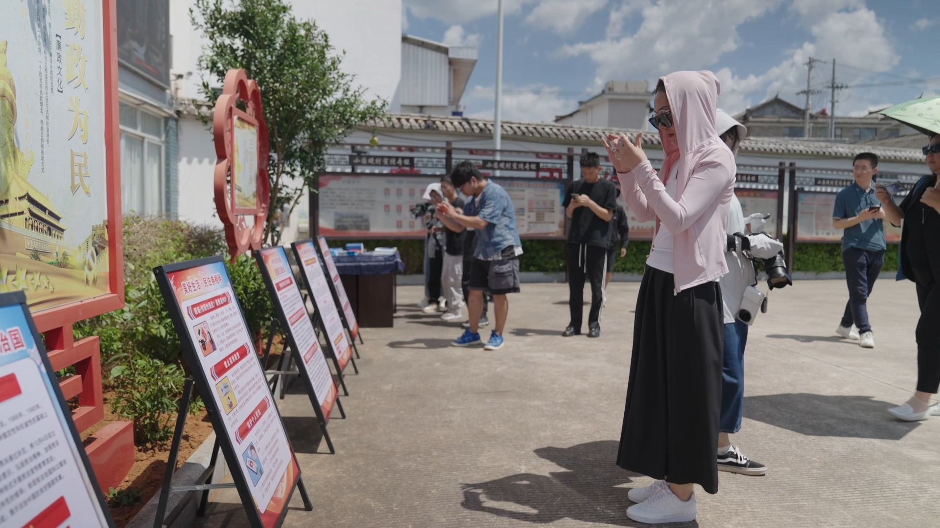 此行第一站,采訪團來到永建鎮(zhèn)小圍埂村。走進該村,青瓦白墻的民居,乳扇飄香的庭院,整潔干凈的村道,古色古香的楹聯(lián)和法治長廊……你能真切感受到村內和諧、積極、向上的村風面貌。道路兩旁隨處可見各式法治宣傳標識和歷史名人事跡,別樣的景致讓村子顯得祥和、靜謐。