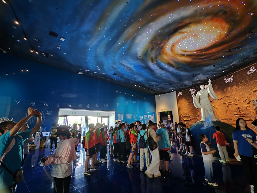 8月14日,游客在天文小鎮(zhèn)上的天文體驗(yàn)館參觀。新華社記者 齊健 攝