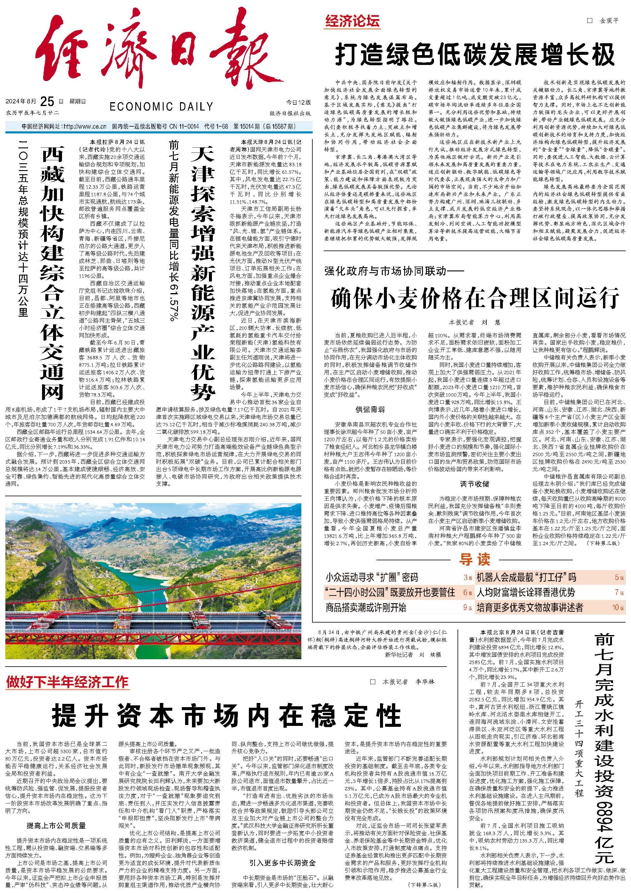 前7月,全國開工34項重大水利工程,較去年同期多8項,總投資2082.5億元,同比增加954.9億元。其中,黃河古賢水利樞紐、浙江曹娥江鏡嶺水庫、河北洺水婁里水庫相繼開工,連同海河流域東淀、小清河、文安洼蓄滯洪區(qū)、永定河泛區(qū)等重大水利工程從圖紙走向現(xiàn)實,引江濟淮、環(huán)北部灣水資源配置等重大水利工程加快建設(shè)進度。