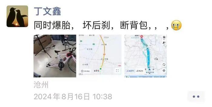 與此同時(shí),丁文鑫也經(jīng)歷了中暑、遇到了暴雨,居無(wú)定所、食無(wú)常地、晝夜顛倒、爆胎、壞剎車更是常事……