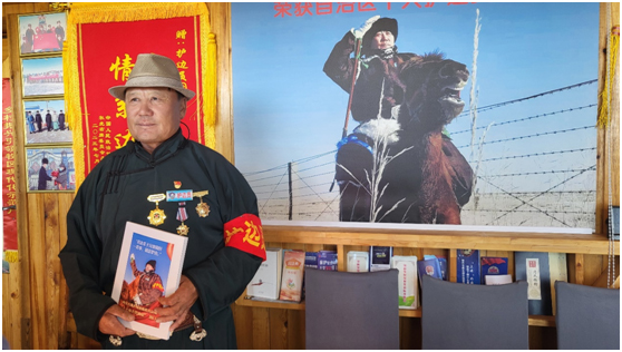 從石頭路走到柏油路,從騎駱駝、馬兒巡邊,到騎摩托車巡邊……圖門的護(hù)邊之路走了許多年,他把父輩們守邊護(hù)邊的精神一直傳承下去,他說(shuō):“作為一名共產(chǎn)黨員,作為一個(gè)黨組織信任的‘紅色堡壘戶’,我會(huì)守好邊疆安寧,守護(hù)好這片綠水青山,服務(wù)好家鄉(xiāng)廣大牧民群眾,帶領(lǐng)大家過(guò)上幸福生活!”