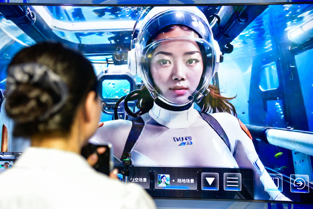 8月28日,參會(huì)人員在數(shù)博會(huì)上體驗(yàn)AI+元宇宙空間。
