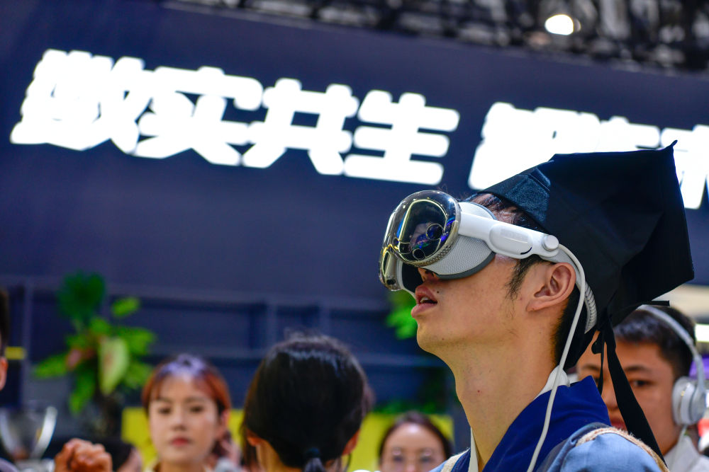 8月28日,參觀者在數(shù)博會(huì)上體驗(yàn)AVP空間觀賽。