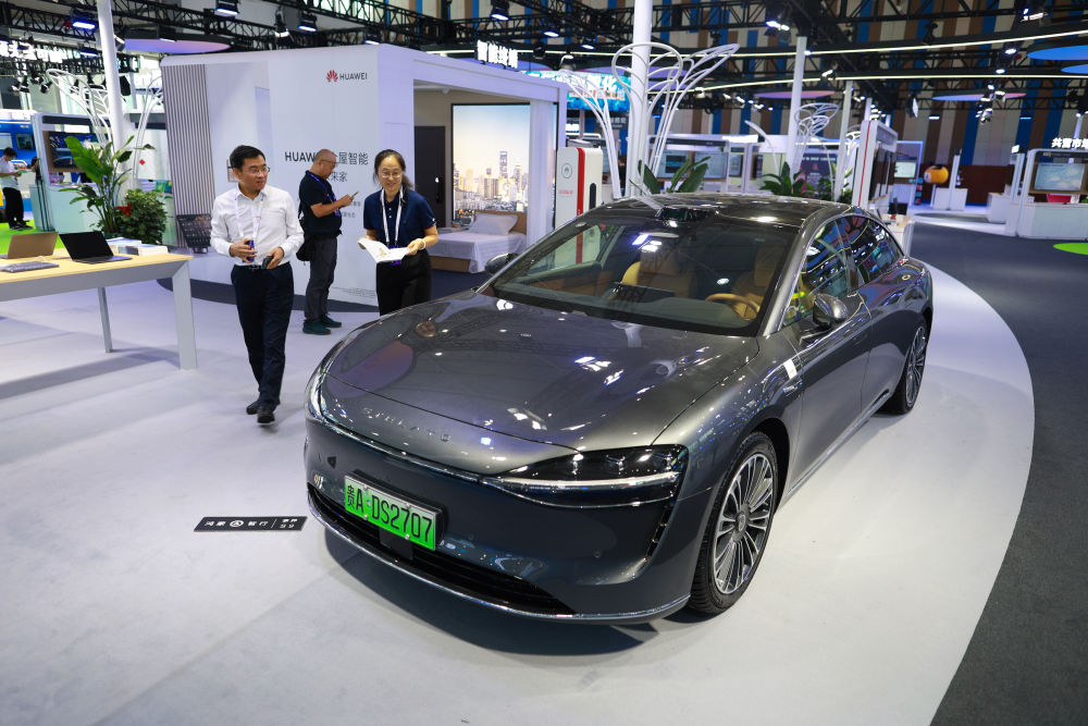 8月28日,觀展者在2024中國(guó)國(guó)際大數(shù)據(jù)產(chǎn)業(yè)博覽會(huì)現(xiàn)場(chǎng)參觀智能汽車(chē)。