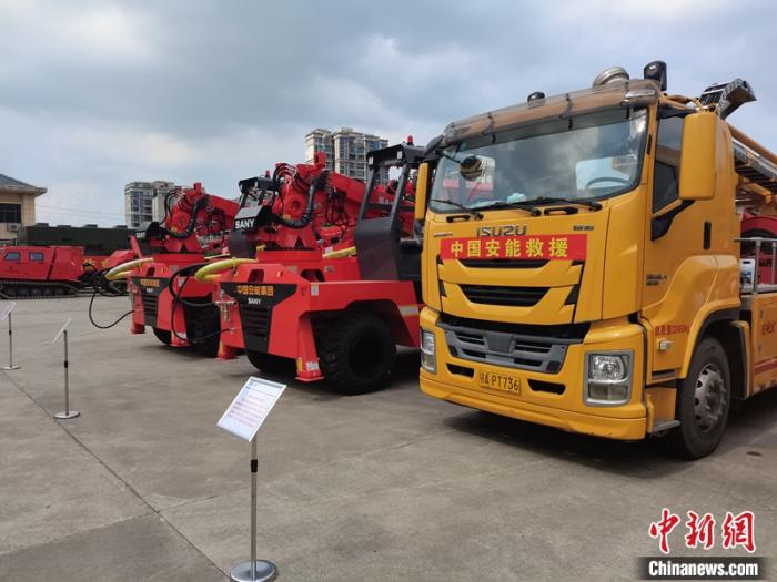 不僅如此,通訊指揮車、子母式龍吸水、水陸兩棲全地形多功能起重機……在這里,一排排重型裝備整齊列隊。