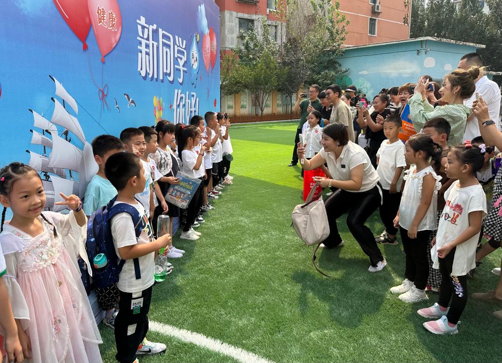 在沈陽市珠江五校教育集團(tuán)怒江校區(qū),千余名小學(xué)一年級(jí)新生來校報(bào)到?!靶峦瑢W(xué)你好”的巨型展板下,孩子們展露笑臉、拍照留念,準(zhǔn)備邁入人生的嶄新階段。
