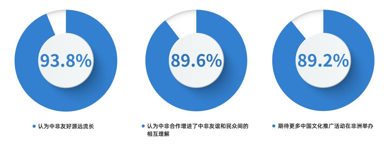 加強(qiáng)中非友好,中方講一個“親”字。國之交在于民相親,中非關(guān)系的根基和血脈在人民,中非關(guān)系發(fā)展更多面向人民。在調(diào)查中,高達(dá)93.8%的受訪者認(rèn)為中非友好源遠(yuǎn)流長;89.6%的受訪者認(rèn)為中非合作增進(jìn)了中非友誼和民眾間的相互理解;89.2%的受訪者期待更多中國文化推廣活動在非洲舉辦。