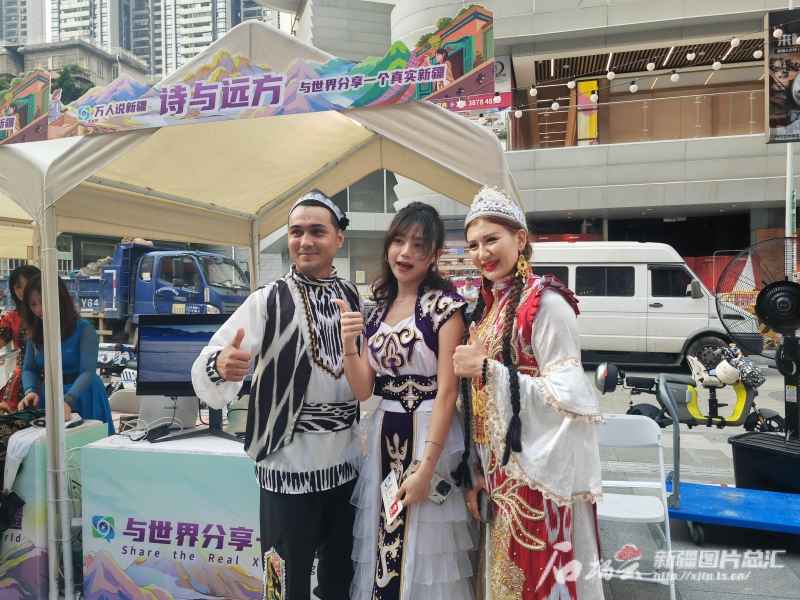 來自大連的王先生到廣州出差,途經(jīng)“萬人說新疆”活動(dòng)現(xiàn)場,他停下了腳步。“這是第一次近距離了解新疆的非遺展品,第一次吃到正宗的新疆美食,我好喜歡,希望‘萬人說新疆’活動(dòng)可以走進(jìn)我的家鄉(xiāng)大連?!蓖跸壬f,一直覺得新疆很遙遠(yuǎn),這一次短暫的接觸新疆人文和美景后,感覺詩與遠(yuǎn)方魅力無限,再遠(yuǎn)也值得去一趟。