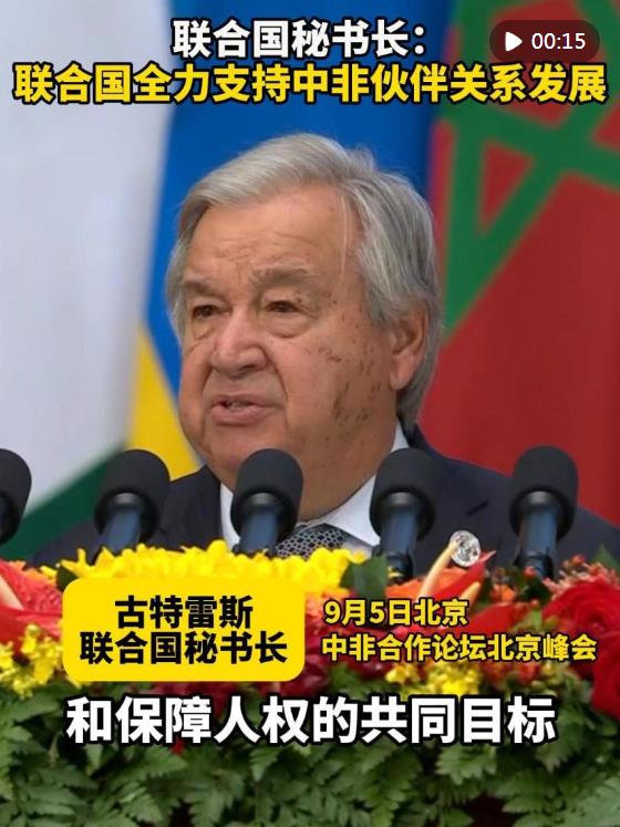 聯(lián)合國秘書長古特雷斯5日在中非合作論壇北京峰會開幕式上說,聯(lián)合國將全力參與支持中非發(fā)展堅固的伙伴關(guān)系,推動世界實現(xiàn)和平、可持續(xù)發(fā)展和保障人權(quán)的共同目標。