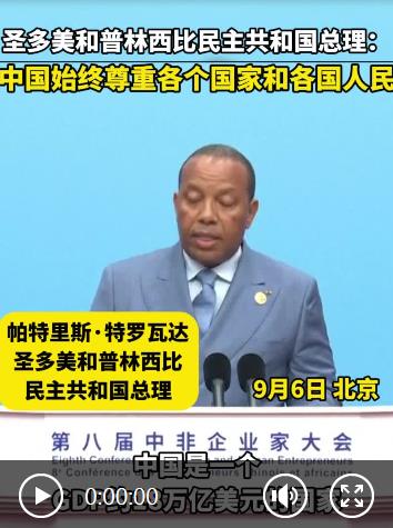 圣多美和普林西比民主共和國總理帕特里斯·特羅瓦達6日在第八屆中非企業(yè)家大會開幕式上說,中國是個大國,而圣多美和普林西比人口只有23萬。“我今天有機會在這里發(fā)言,體現(xiàn)了中國始終尊重各個國家和各國人民,共建、共享繁榮和平世界,共筑中非命運共同體。”