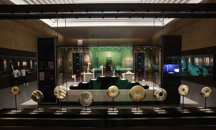 這是良渚博物院內(nèi)展出的良渚遺址發(fā)掘出來(lái)的文物(2024年4月18日攝)。 新華社記者 徐昱 攝