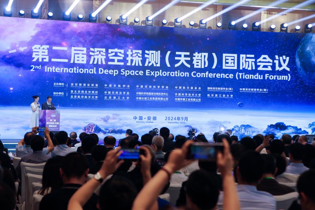 9月5日,這是第二屆深空探測(cè)(天都)國(guó)際會(huì)議開幕式現(xiàn)場(chǎng)。新華社發(fā)(施亞磊 攝)