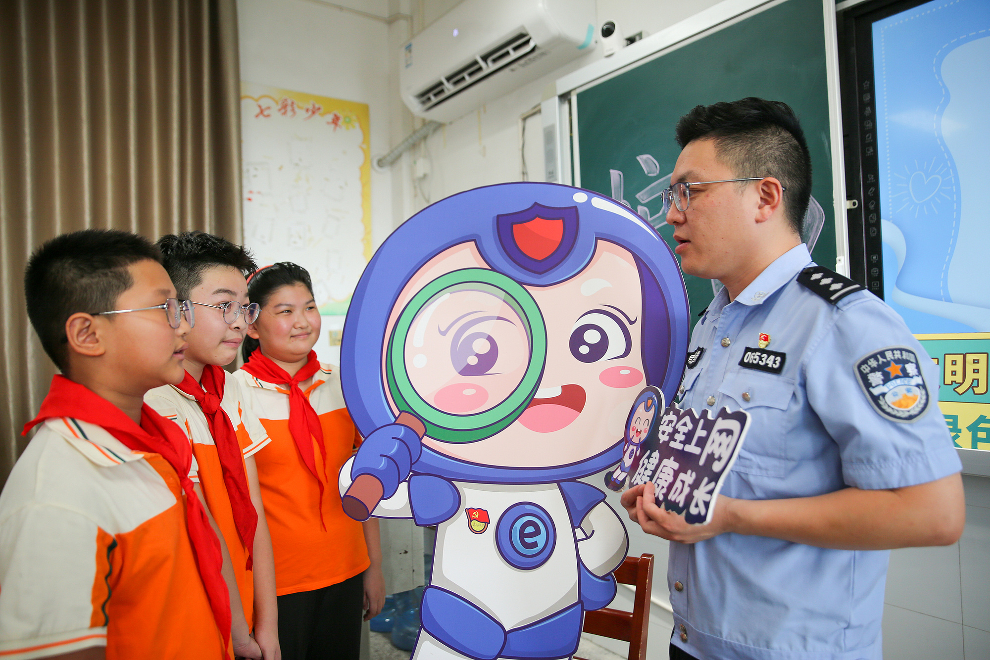 民警向?qū)W生普及安全上網(wǎng)、文明上網(wǎng)等知識