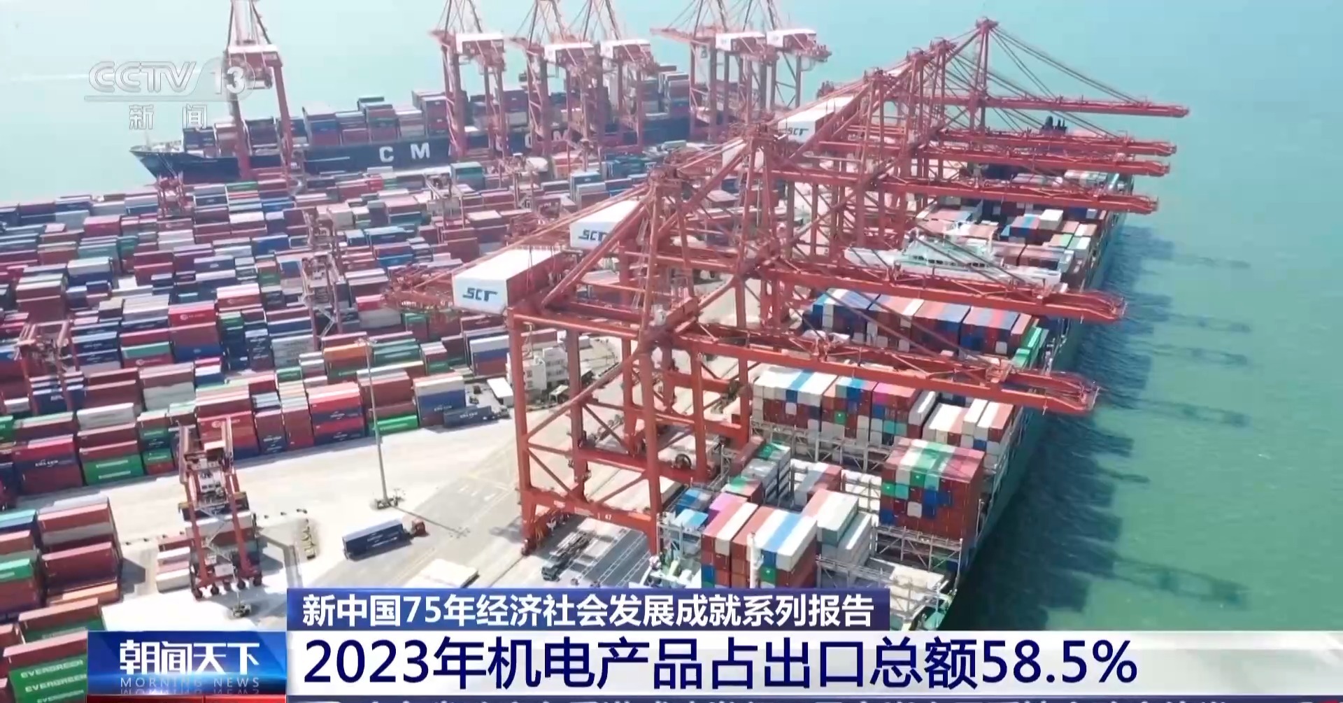 2023年,機電產(chǎn)品在出口總額中占比達58.5%,其中,汽車出口522萬輛,我國首次成為全球第一大汽車出口國。