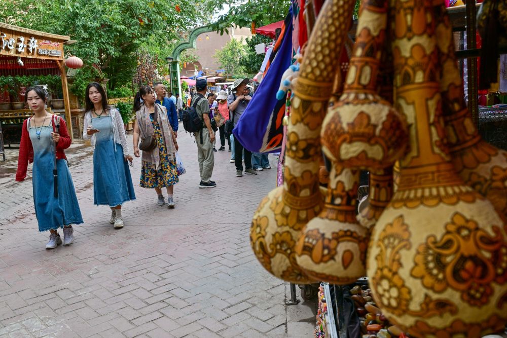 游客在新疆喀什古城景區(qū)觀(guān)光游覽。新華社記者 丁磊 攝