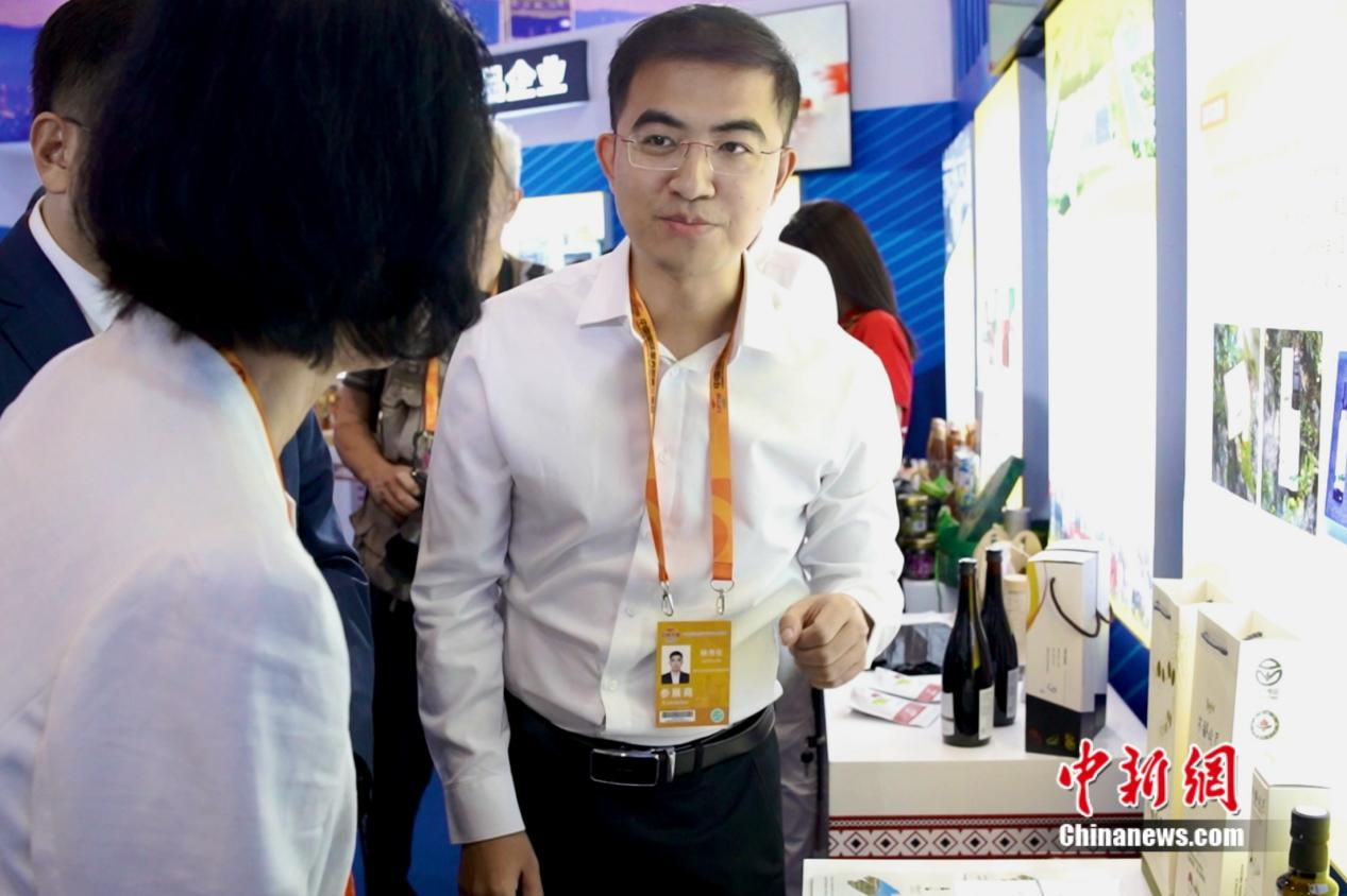 臺灣青年林書任推薦他從大涼山帶來的橄欖油。陳銀沙 攝