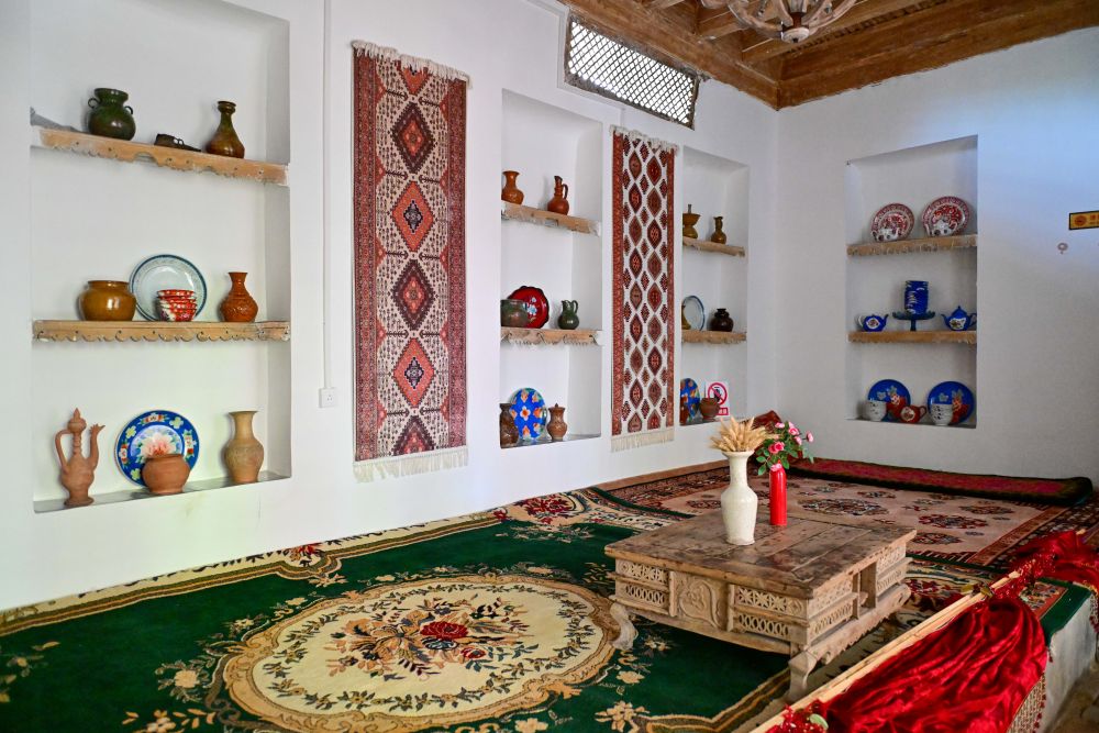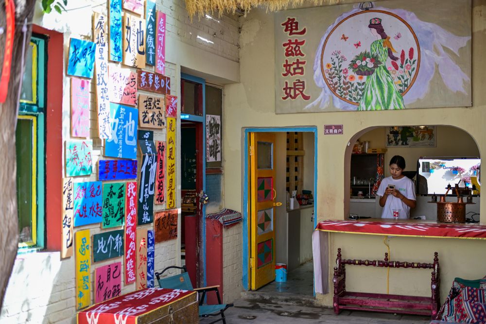 來到龜茲小巷,各式各樣、色彩明艷的木門總能讓游人目光停駐,推門入院又是另一番風(fēng)景。走進(jìn)“爺爺?shù)募摇甭糜渭以L院,傳統(tǒng)古建筑氣息迎面而來,這座有上百年歷史的民居融和了多民族建筑藝術(shù)特點(diǎn),門窗設(shè)計(jì)、前檐廊木結(jié)構(gòu)等與我國傳統(tǒng)木構(gòu)建筑一脈相承。