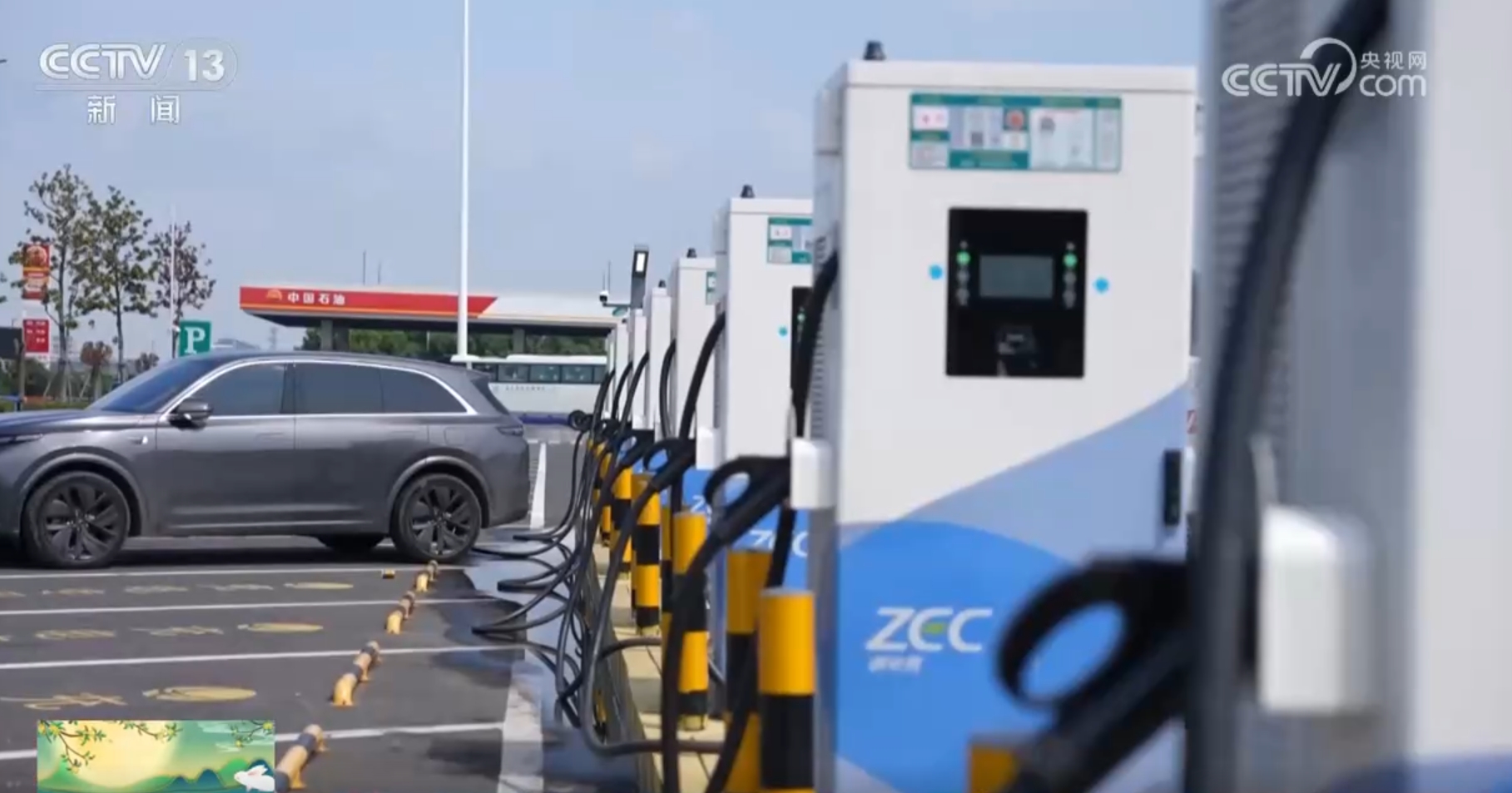 此外還需要提醒的是,16日小客車(chē)公路出行新能源車(chē)輛的占比達(dá)到將近六成,根據(jù)交通運(yùn)輸部路網(wǎng)中心的預(yù)測(cè),16日全國(guó)高速公路充電高峰時(shí)段為12時(shí)至19時(shí)。為應(yīng)對(duì)充電高峰到來(lái),中秋前夕,全國(guó)各地的高速服務(wù)區(qū)都提前做好了應(yīng)急方案,保障出行車(chē)輛能及時(shí)、快速充電。在浙江常臺(tái)高速嘉紹大橋服務(wù)區(qū),浙江海寧供電部門(mén)整合光伏、風(fēng)電、儲(chǔ)能等資源,通過(guò)水資源循環(huán)利用、充電設(shè)施配套、垃圾分類(lèi)等措施,形成了“零碳服務(wù)區(qū)”。這里不僅能夠使用光伏綠電,充電時(shí)間也較原來(lái)平均縮短半小時(shí)左右。
