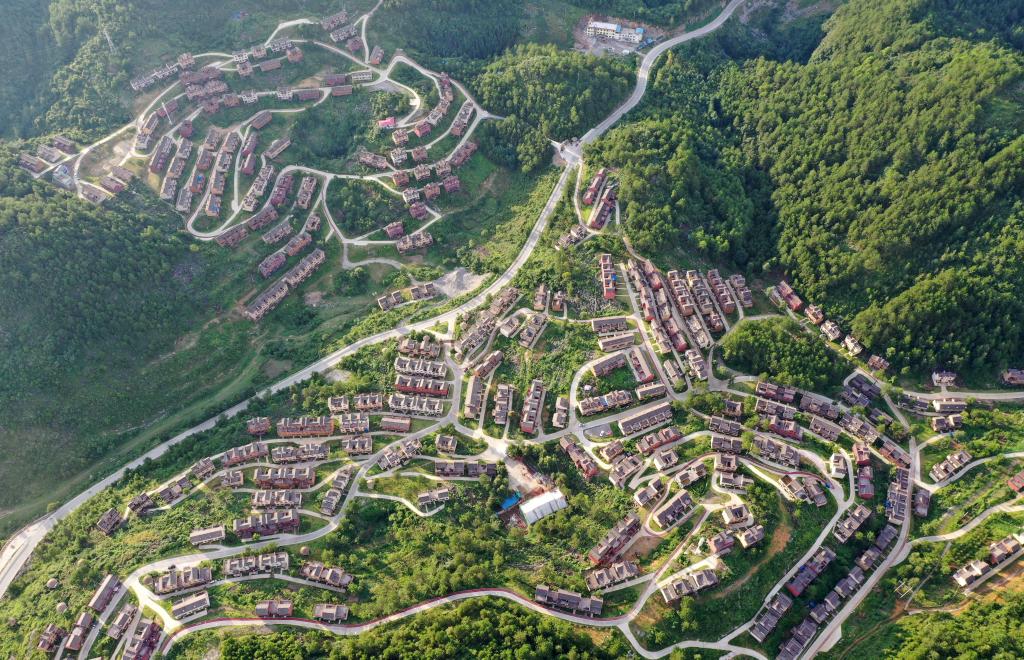 這是廣西南丹縣里湖瑤族鄉(xiāng)朵努社區(qū)“千家瑤寨·萬戶瑤鄉(xiāng)”易地扶貧搬遷安置點(diǎn)(2020年8月4日攝,無人機(jī)照片)。新華社記者 陸波岸 攝