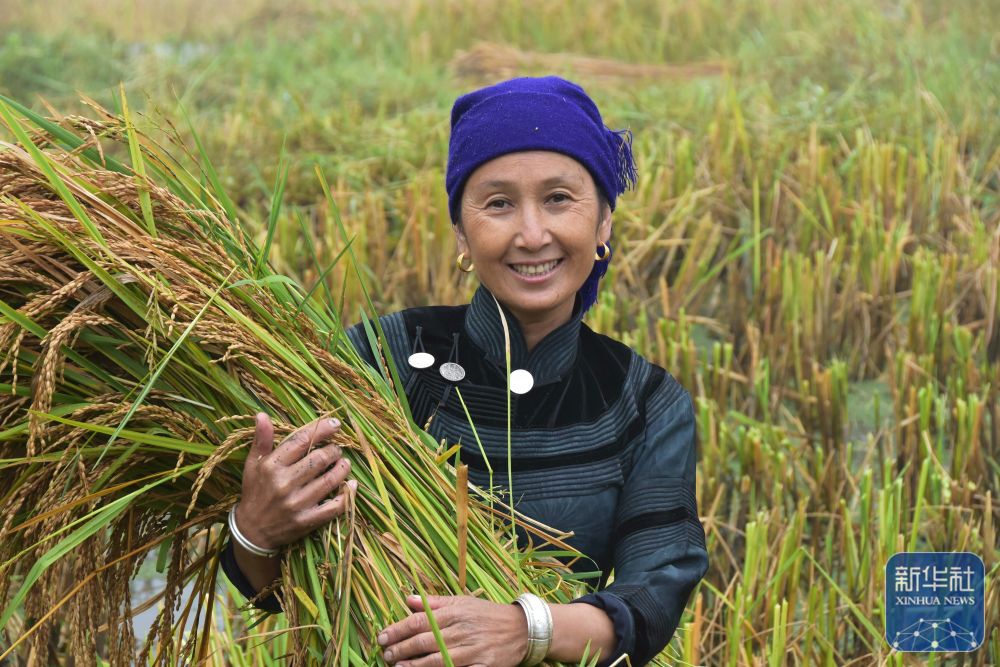 9月22日,在云南省紅河哈尼族彝族自治州元陽(yáng)縣,農(nóng)戶在收割水稻。