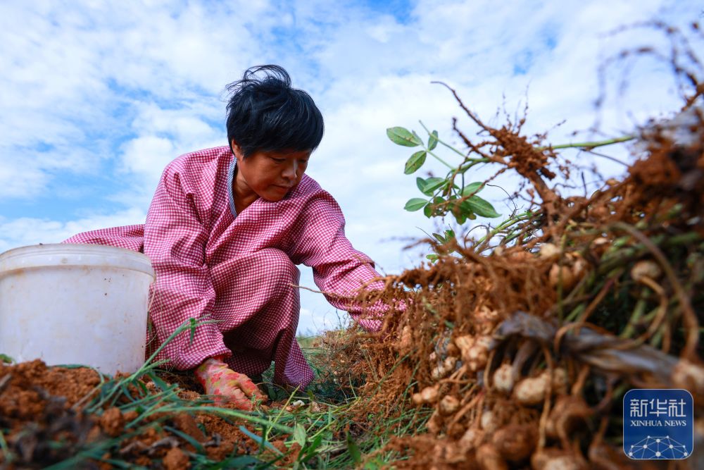 9月21日,在河南省開封市祥符區(qū)范村鄉(xiāng)葛寨村,農(nóng)民在收獲晚茬花生。