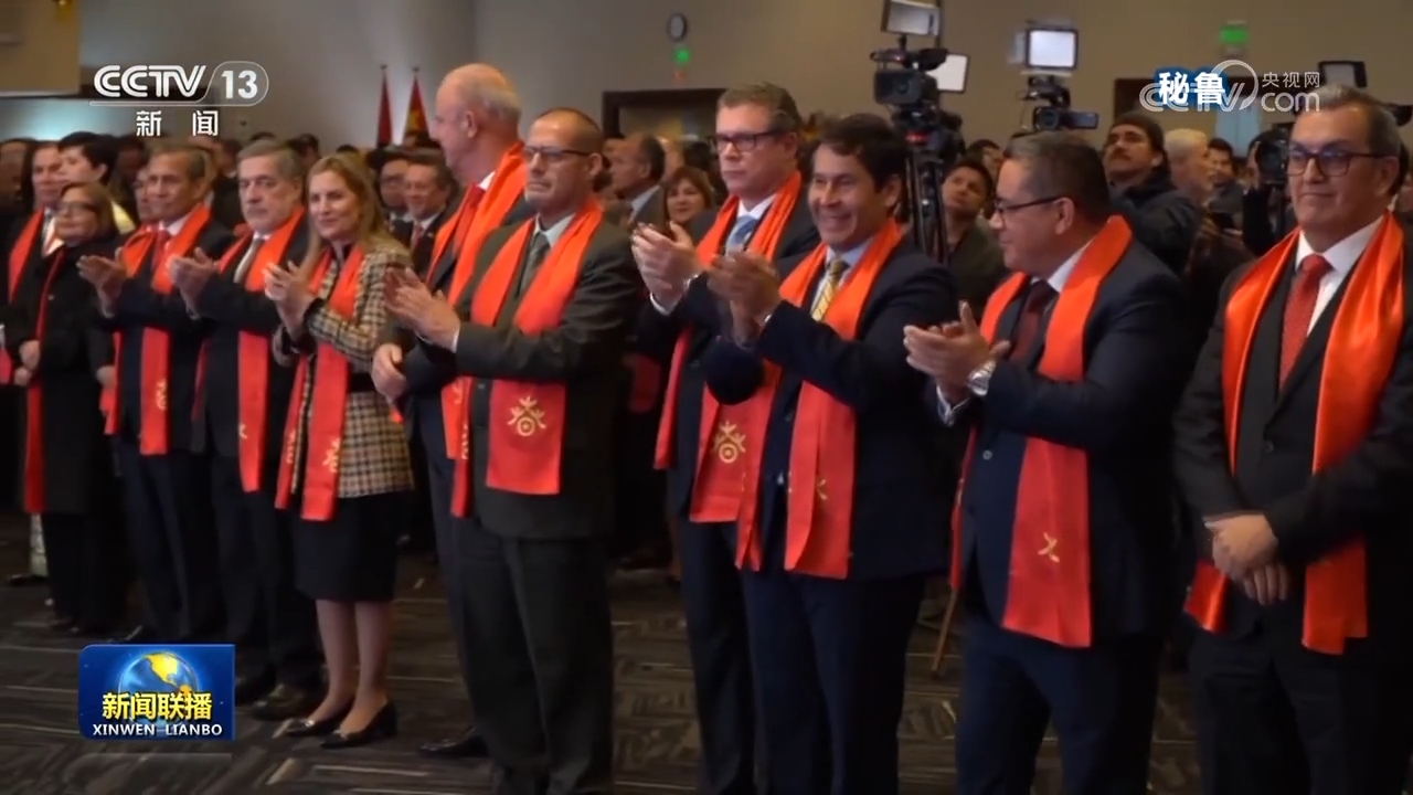 在中國駐秘魯大使館舉辦的慶?;顒又?,中秘各界人士熱烈祝賀新中國國慶。與會嘉賓共同欣賞兩國名曲,觀看中秘合作成果展等。