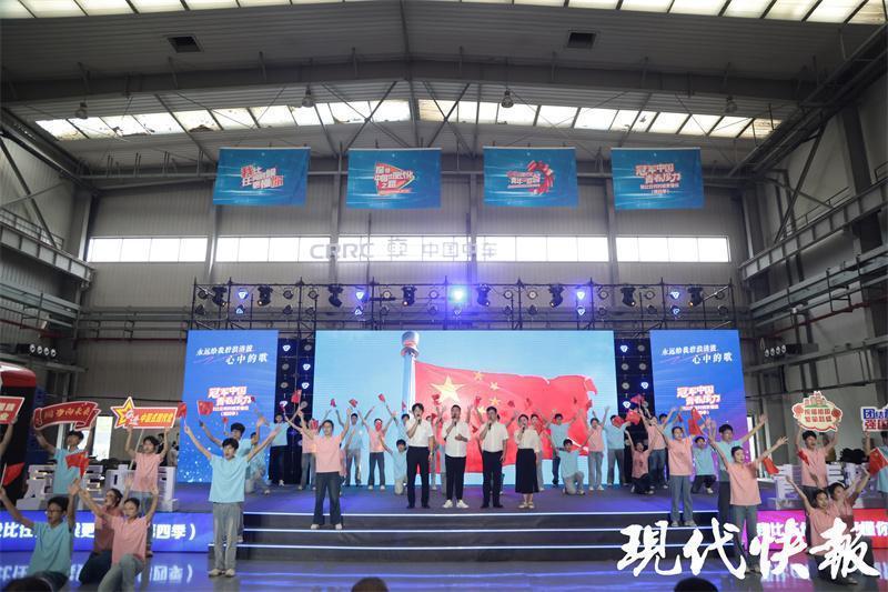 活動(dòng)現(xiàn)場(chǎng),四季“青青”代表帶來活力四射的青春快閃,全場(chǎng)觀眾揮舞著手中的國(guó)旗合唱《我和我的祖國(guó)》,向祖國(guó)深情告白。來自上海、南京、常州、杭州的四位青青智造家展示領(lǐng)跑全國(guó)的產(chǎn)品、技術(shù),演繹超燃“冠軍時(shí)刻”。