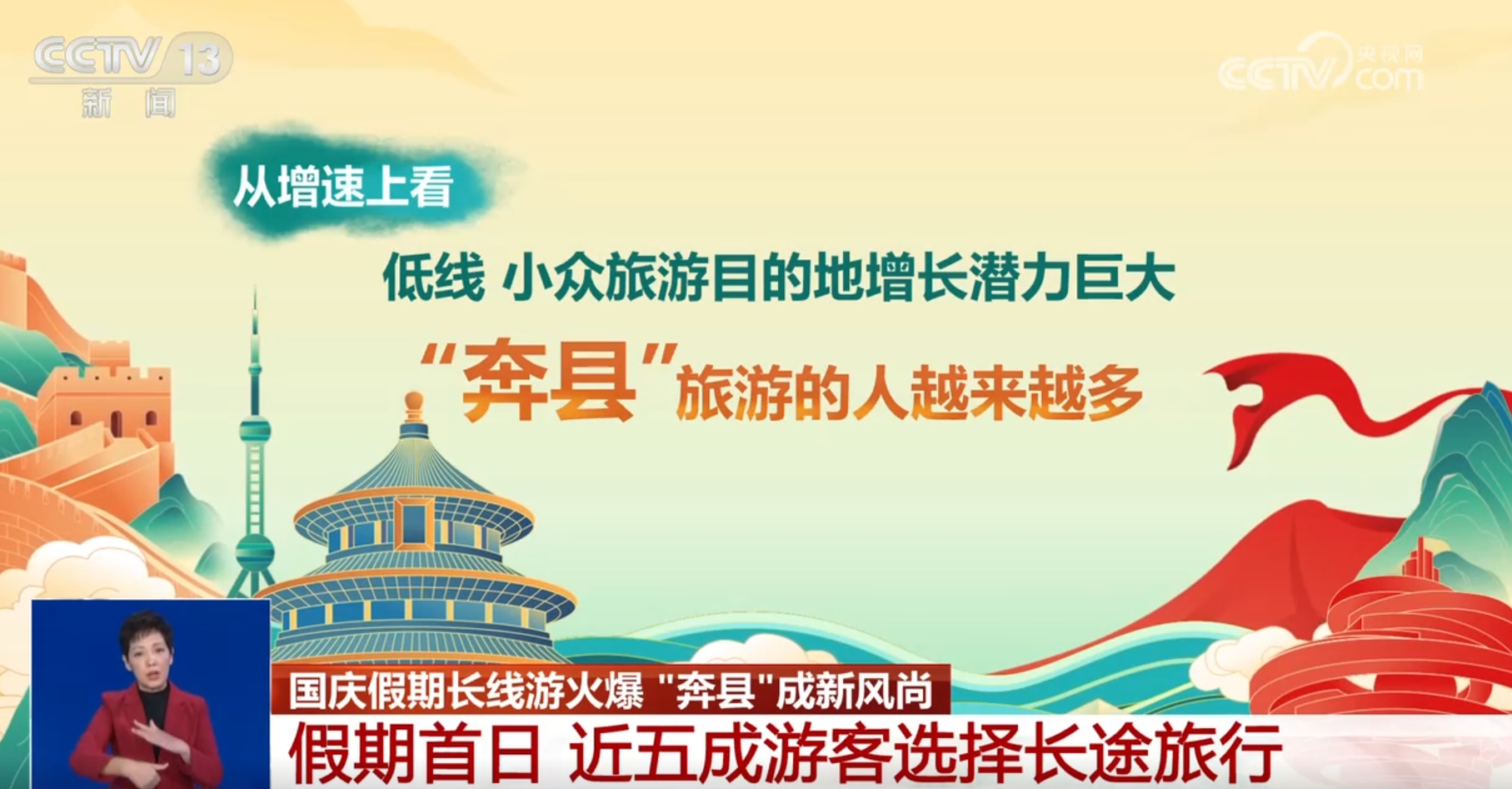 從增速上看,低線、小眾旅游目的地增長(zhǎng)潛力巨大,“奔縣”旅游的人越來(lái)越多。九寨溝、安吉、香格里拉、平潭、都江堰、景洪等縣級(jí)市和縣城在國(guó)慶首日都分別實(shí)現(xiàn)訂單109%、86%、74%、67%、51%、50%的增長(zhǎng)。